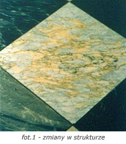 - uaktywnieniem się niektórych związków w kamieniu pod wpływem zbyt długo oddziałującej wilgoci i składników zaprawy (fot.1),