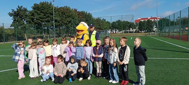 Wspólnie z lokalną Policją (18.09.2025 r.) PSB Mrówka Biłgoraja zorganizowała wyjątkową akcję edukacyjną dla uczniów klas pierwszych Szkoły Podstawowej ??. Podczas spotkania dzieci uczyły się najważniejszych zasad bezpieczeństwa na drodze – jak prawidłowo przechodzić przez jezdnię, co oznaczają znaki drogowe i dlaczego warto być widocznym.